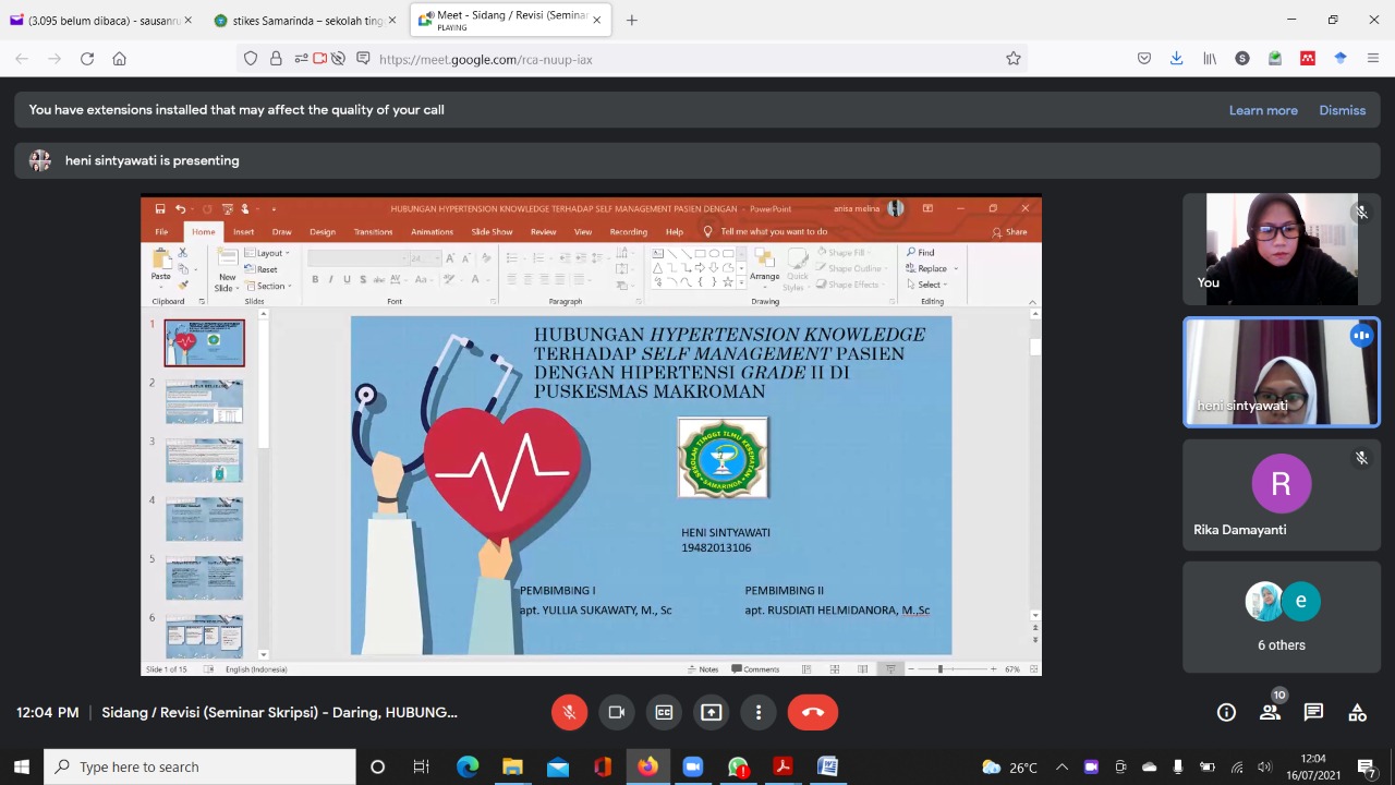 Hipertensi merupakan salah satu penyakit yang jumlah pasiennya semakin meningkat setiap tahunnya, sementara itu penyakit ini dapat menyebabkan komplikasi yang dapat mengubah hidup seseorang. salah satu cara untuk mengontrol penyakit hipertensk ini dengan memiliki pengetahuan yang baik mengenai hipertensi dan juga melakukan self management yang baik. penelitian ini dilakukan untuk melihat profil pengetahuan pasien, dan hubungan antara hypertension knowledge dengan self management tersebut. jenis penelitian ini termasuk dalam metode non eksperimental. data diambil langsung dari responden dengan cara mengisi kuesioner terkain hypertension knowledge dan self management. objek dalam penelitian ini adalah pasien hipertensi di puskesmas makroman yang berusia 20-70 tahun, laki-laki dan perempuan, pasien yang telah didagnosa dokter menderita penyakit hipertensi, pasien peserta BPJS yang telah menerima edukasi dari PROLANIS dan Posyandu lansia dan bersedia menjadi responden penelitian. analisa data yang digunakan pada penelitia ini adalah metode analisis deskriptif. |