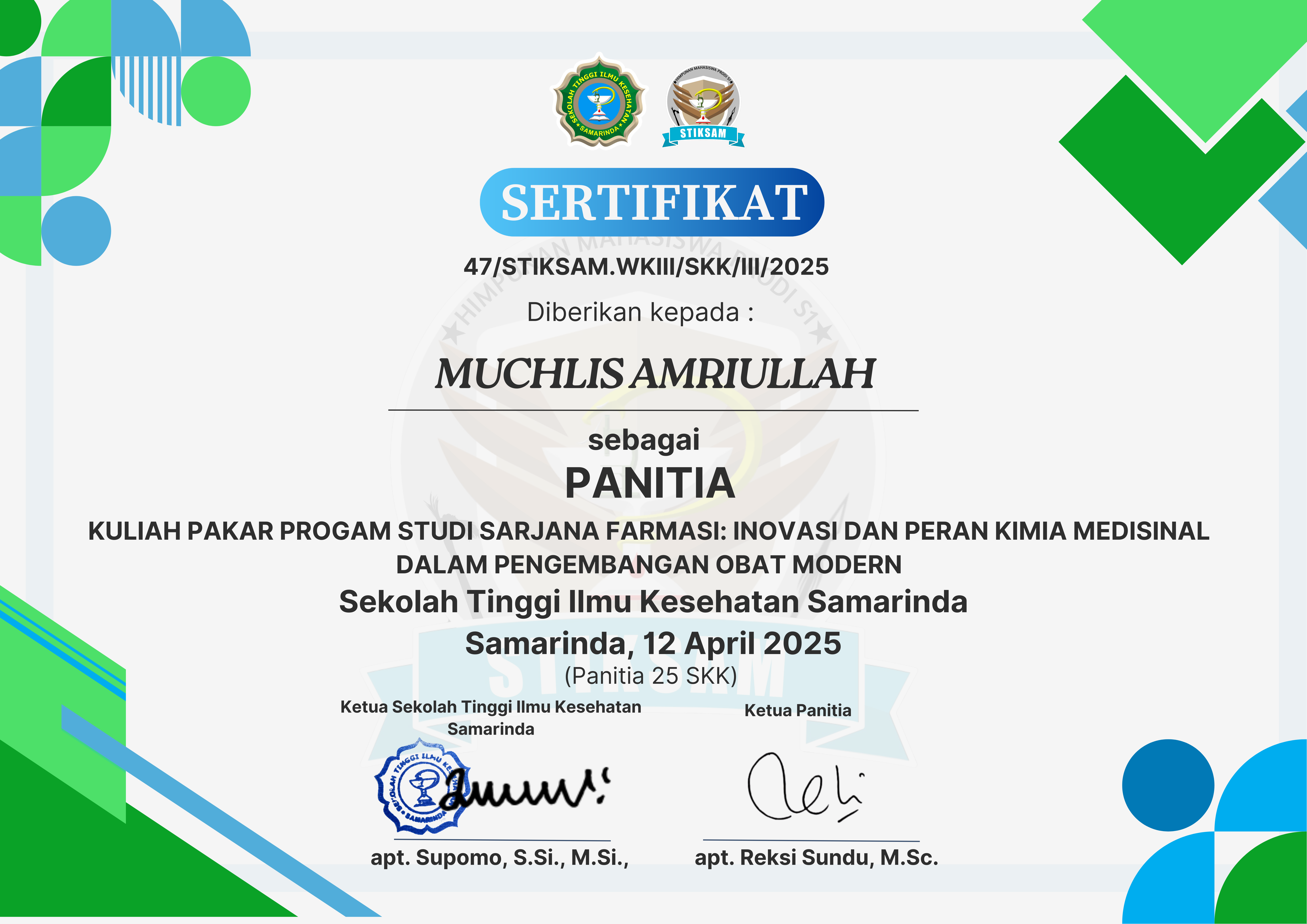 | Title: | KULIAH PAKAR PROGRAM STUDI SARJANA FARMASI: INOVASI DAN PERAN KIMIA MEDISINAL DALAM PENGEMBANGAN OBAT MODERN |